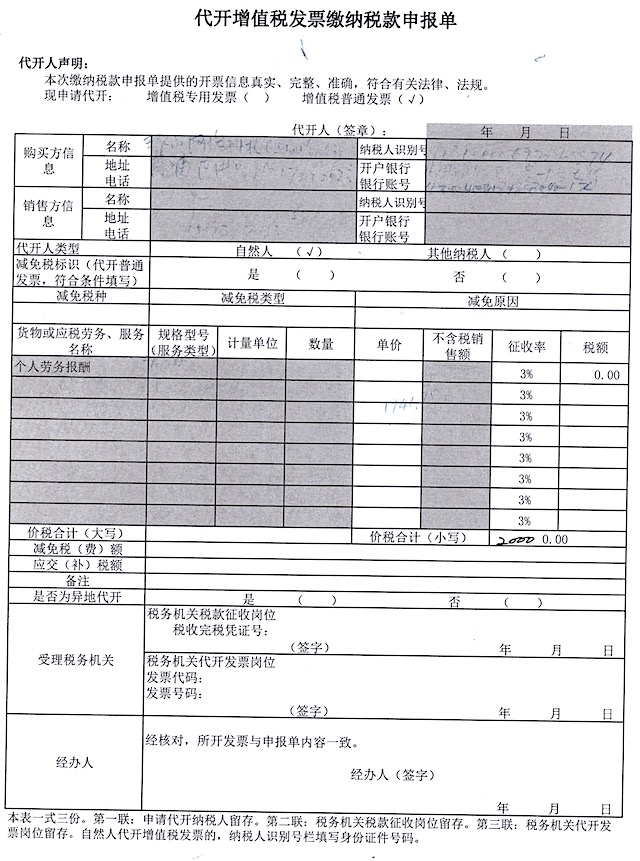个人开发者如果要开增票给客户,可以找地税局代开。先做临时纳税人登记,得到一个身份证号+01的税号,然后填写如下申请表: